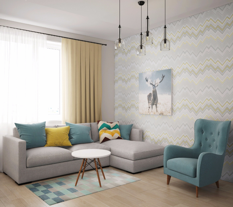 3. Кухня-гостиная, 32,3м2. Здесь замес из сканди и стиля 60-х. Получилось яркое, необычное пространство.