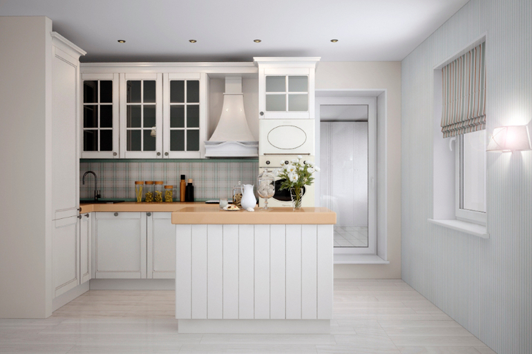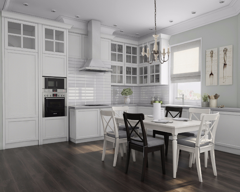1. Кухня-столовая в загородном доме, 36м2. Легкий прованс. Светлый и нежный.