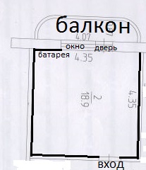 Квадратная комната, 18м.