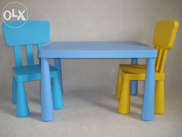 - Голубой стол маммут и зеленые 2 стула