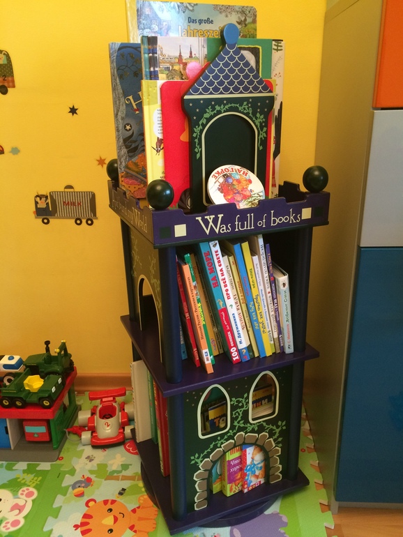 здорово! а спортивный уголок планируете? очень стеллаж понравился, главным образом идея (исполнение тоже классное конечно). Удобно ли ребенку самом книжки брать? и где покупали?