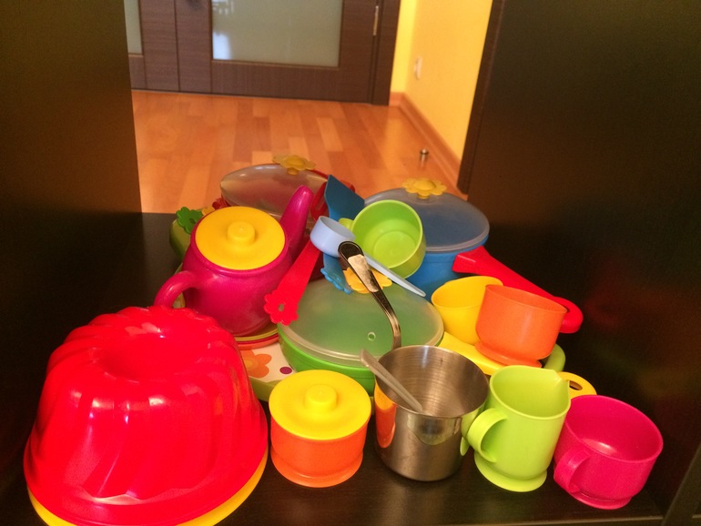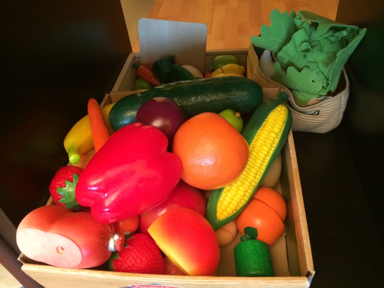 Зато ребенок овощи/фрукты и посуду после игры относит на место, так как уже запомнил где-что лежит.