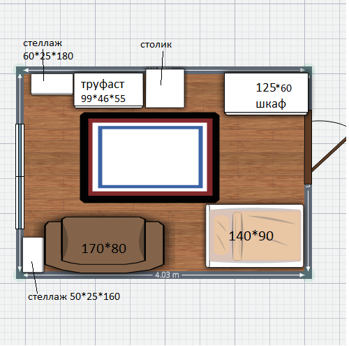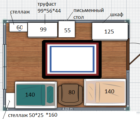 Стол побольше легко влезет либо к окну, либо там же, по стене. А для игрушек можно кровати с ящиками взять, либо стеллаж-колонну.