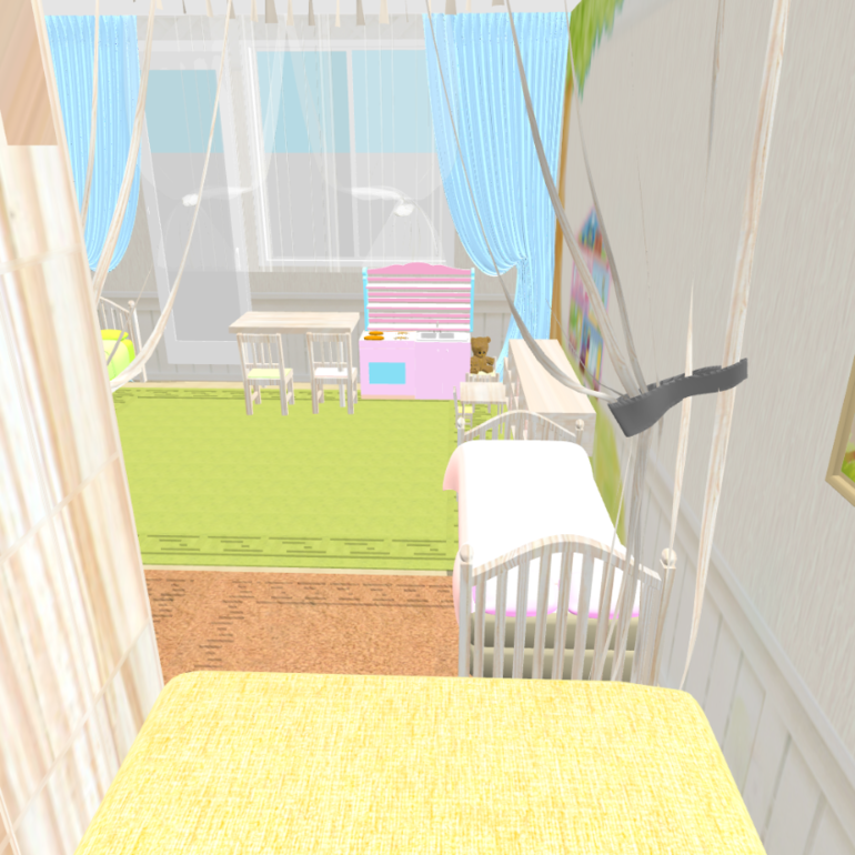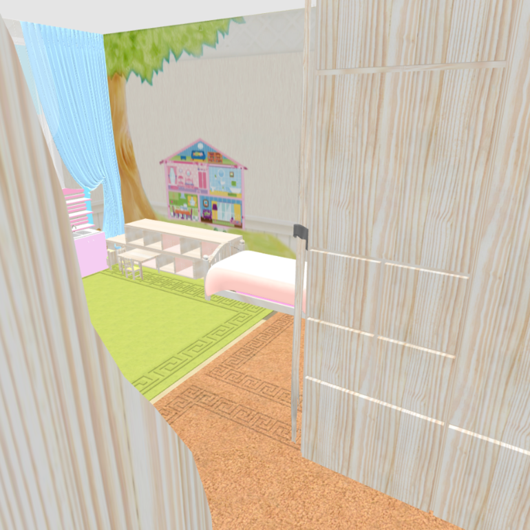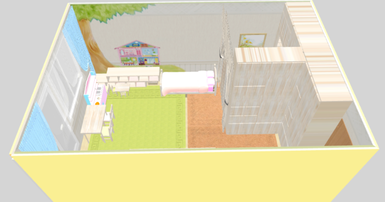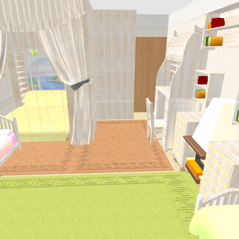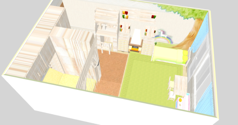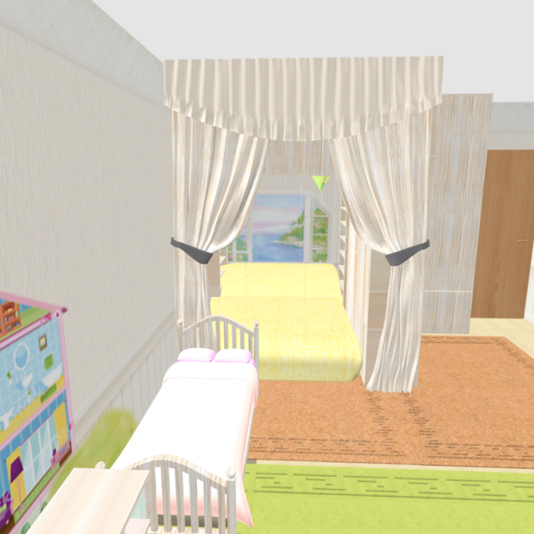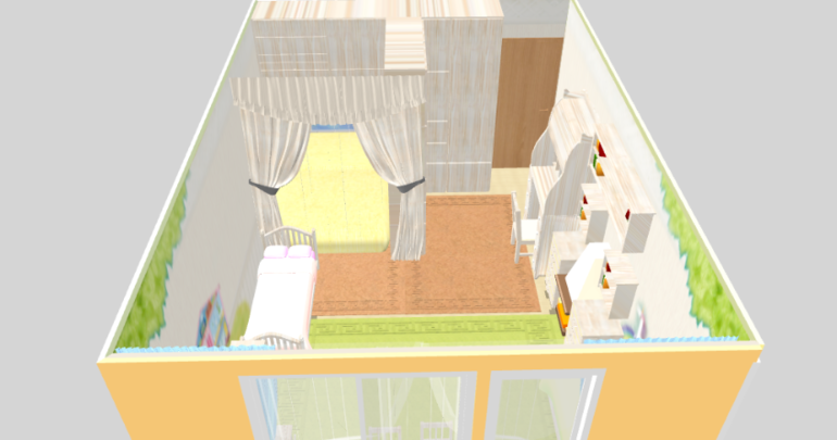 Зонирования как такового нет, просто отделена наша кровать. Кровать младшей вплотную к нам, т.к дочка маленькая и должна быть рядом пока что.