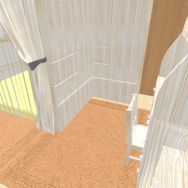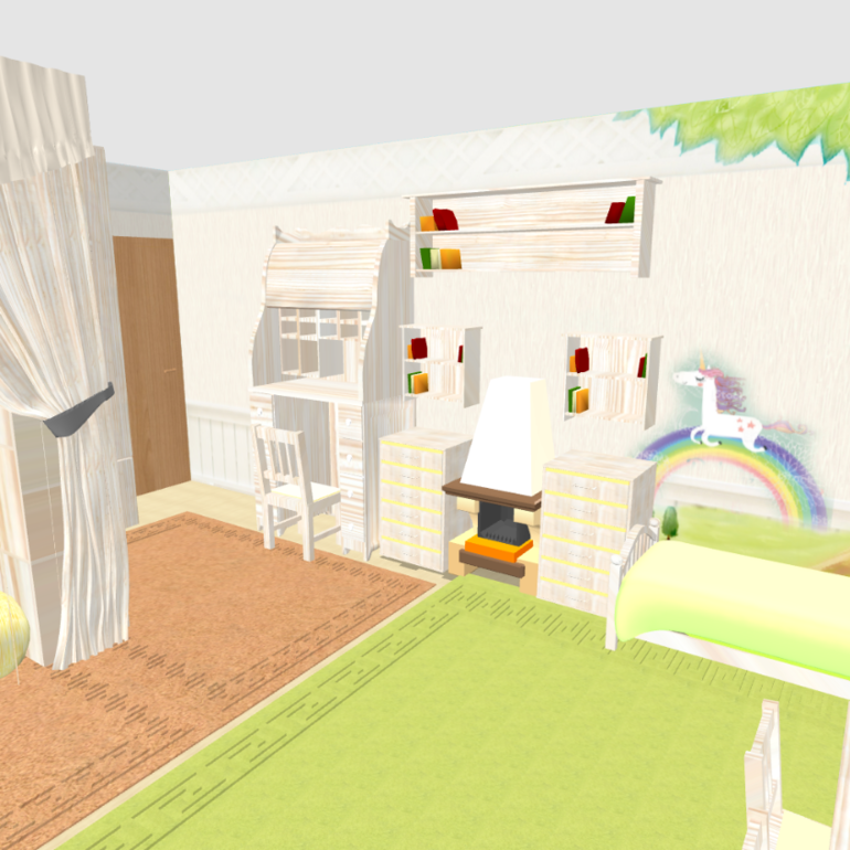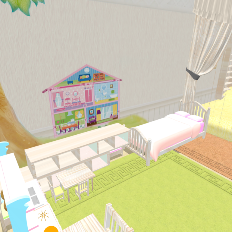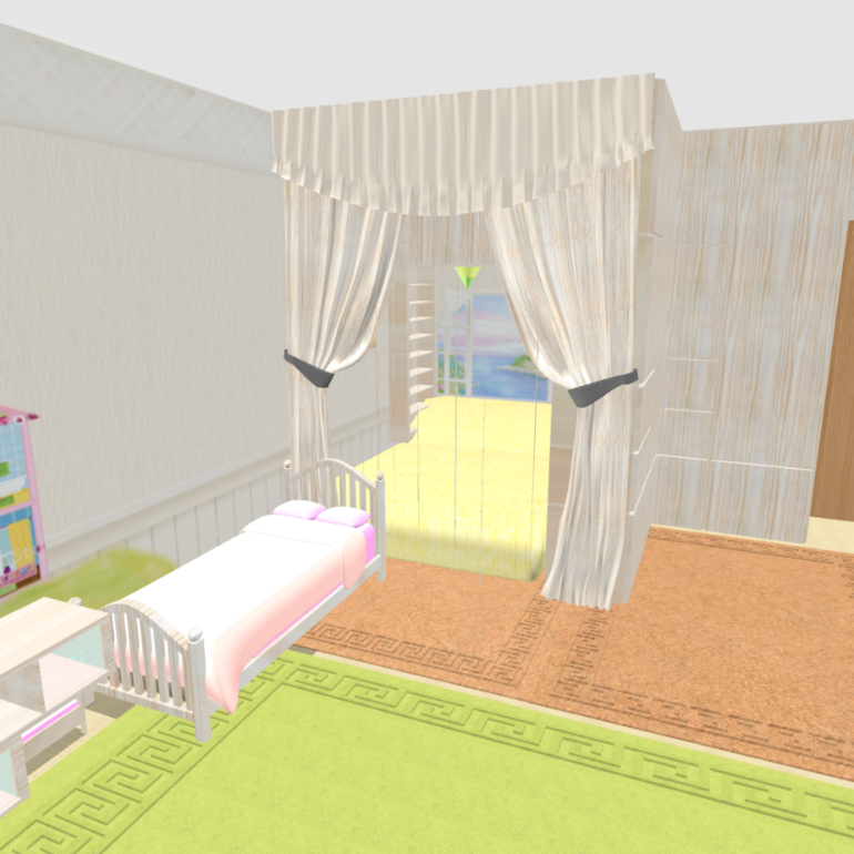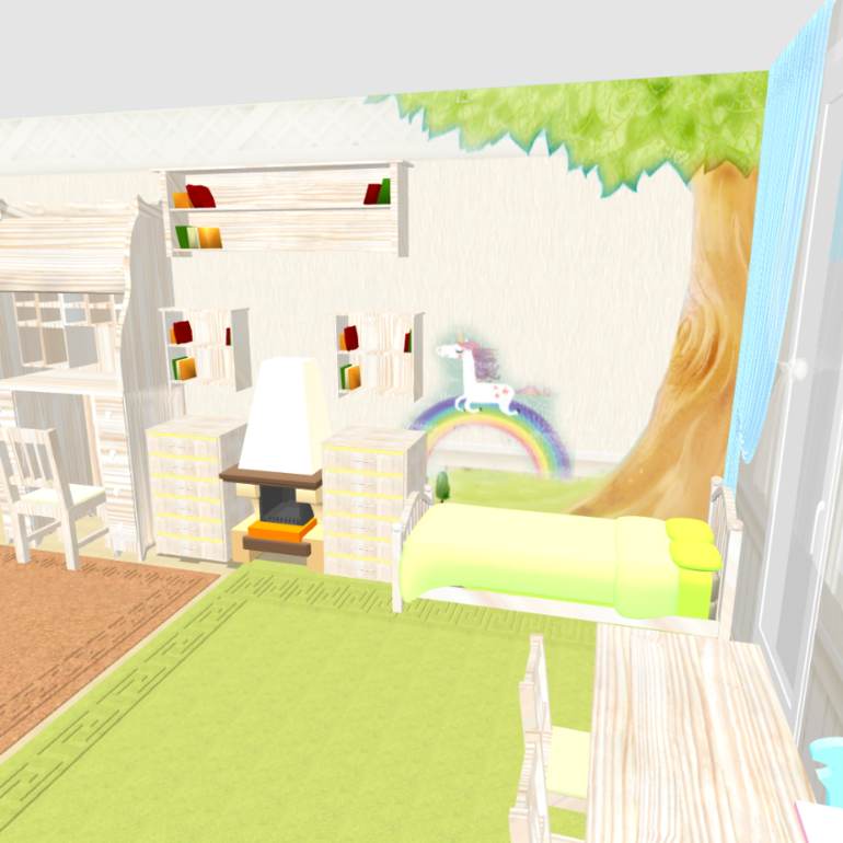 Зонирования как такового нет, просто отделена наша кровать. Кровать младшей вплотную к нам, т.к дочка маленькая и должна быть рядом пока что.