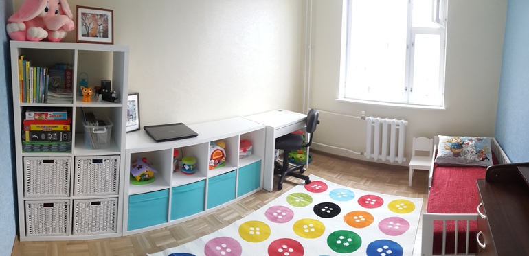 у нас 2 стеллажа 4х4, там все книги, материалы, настольные игры, лего. Отдельно 4 коробки с машинками только, спрятаные. и плюс еще все наши вещи: книги, мое рукодельное. Взяли еще вставки с дверцами и с ящиками, очень удобно. Есть и открытые и закрытые ячейки в итоге
