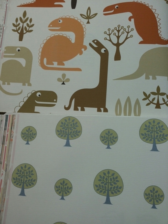 я сначала думала о сиреневых и розовых динозаврах, но дочке они не понравились. А кирпично-коричневые динозавры больше для мальчишки. я же для девочки подбираю.Просто раньше шкаф стоял в комнате для двоих детей (мальчик и девочка) , а теперь его нужно вписать в комнату дочки.Думаю, что деревья лучший вариант .Или же тогда просто беж в горошек!