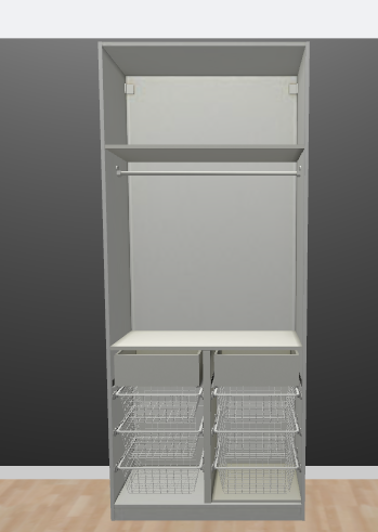 У нас есть паксы двух вариантов глубины. Те что узкие, удобнее с полками. Которые широкие с корзинами и ящиками, до конца полок тяжело дотягиваться, а коробки дети могут случайно перевернуть, потом собирать и складывать вещи. Ваше наполнение для одежды как раз подойдет. В верхние ящики трусы-носки, в корзины одежду. Я сейчас своим стуву купила, тоже корзины внизу.