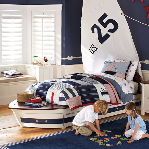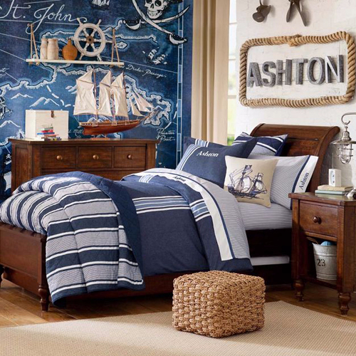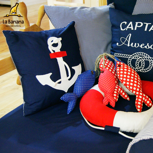 По факту, оформить детскую в морской теме задача довольно простая. В магазинах многих мебельных фабрик представлены кровати с «морскими рисунками», или игровыми аксессуарами, а уж текстиль и прочие «штучки» в этой стилистике можно найти практически в любых интерьерных лавках или вообще сделать самостоятельно.