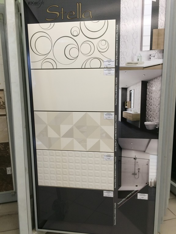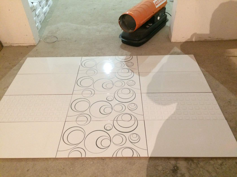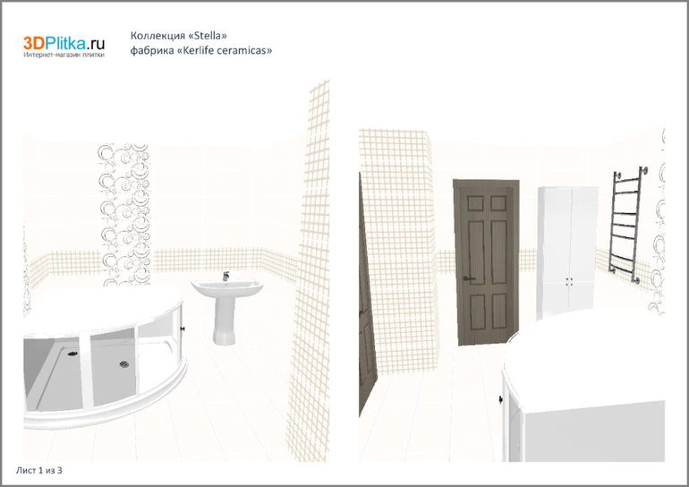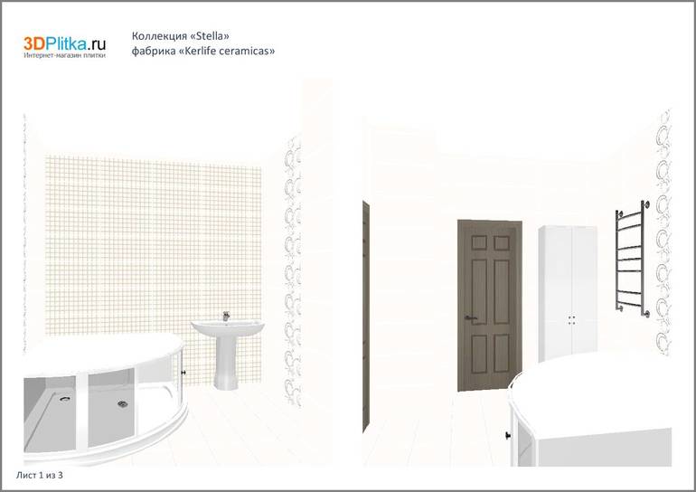 Интерьерное решение ванной комнатыКупили плитку. В магазине сделали раскладку, а меня в ней что-то смущает. Хотела бы услышать ваше мнение. Может у кого есть такая плитка, была бы очень благодарна за фото.
