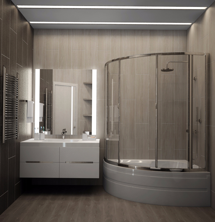 5. Совмещенный санузел с душевой кабиной, 6,3м2. Сдержанность и строгость в линиях и цвете.