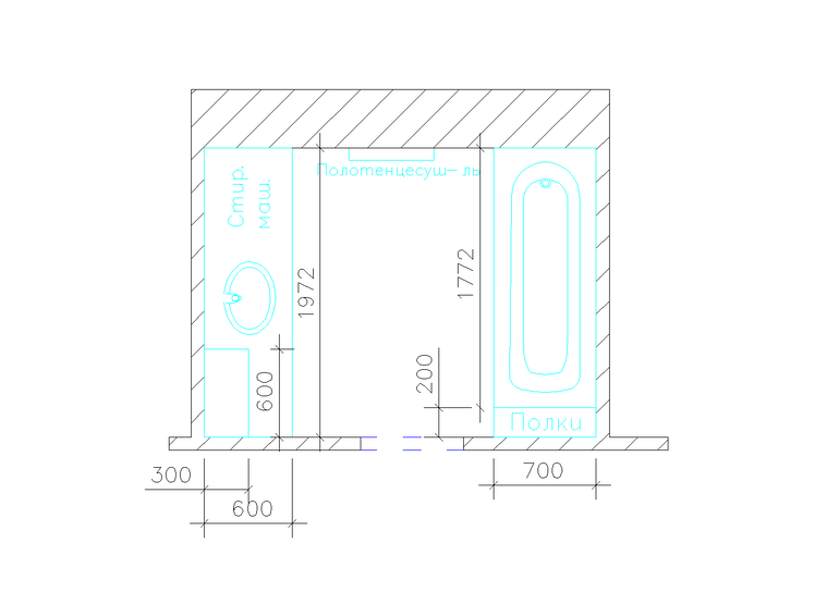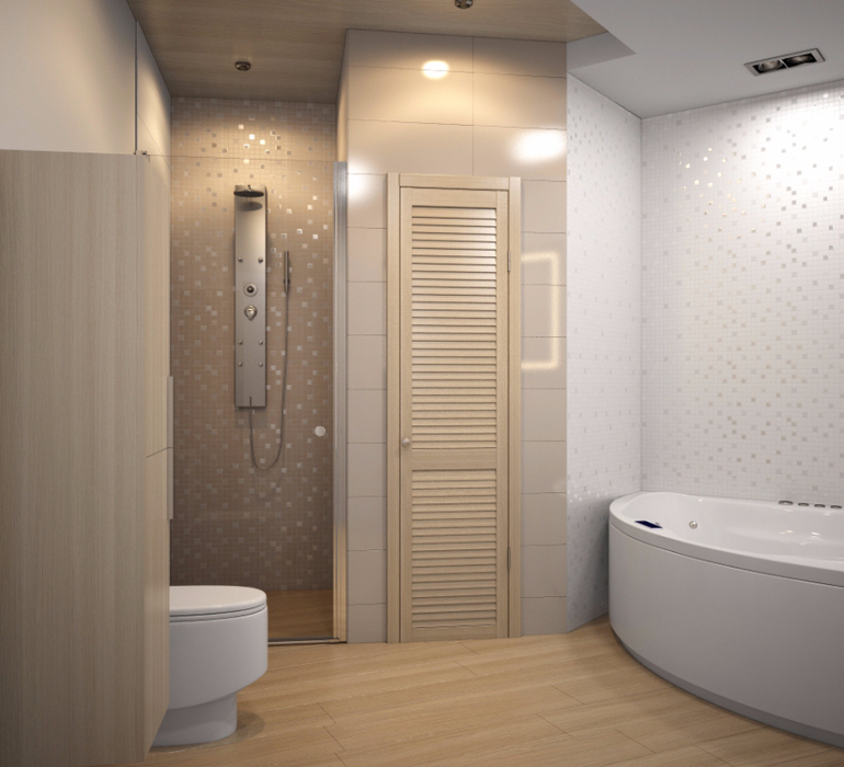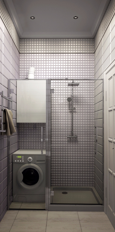 6. Ванна 3,9м2. Была поставлена задача поместить в это ограниченное пространство и ванну, и душевую кабину, и даже стиральную машину.