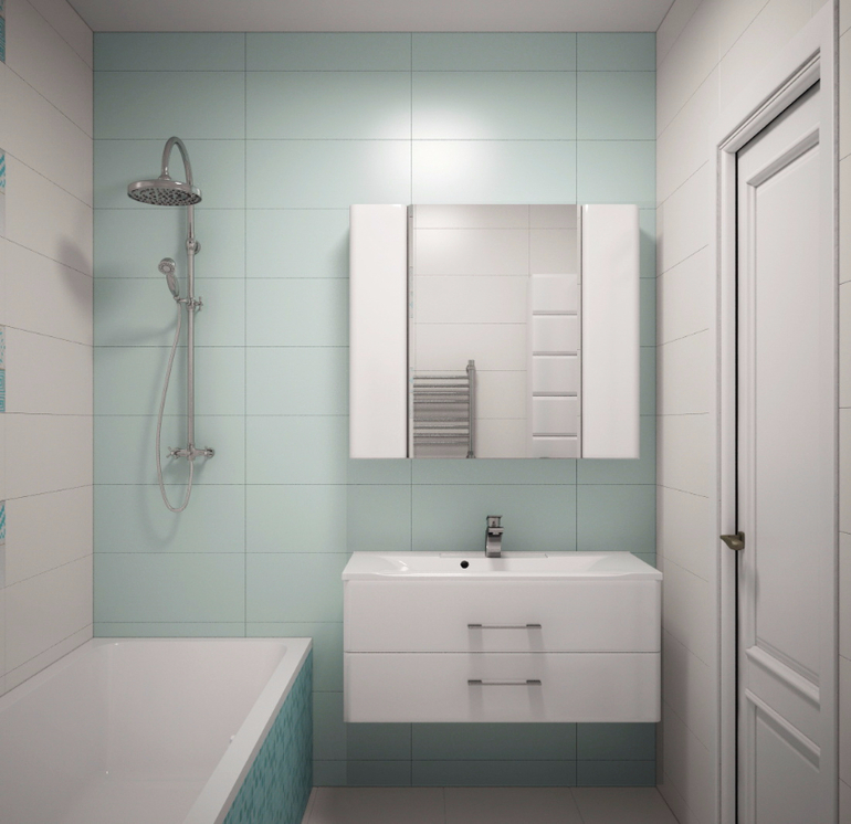 1. Ванная 3,1м2, в трехкомнатной квартире. Яркие, жизнерадостные цвета.