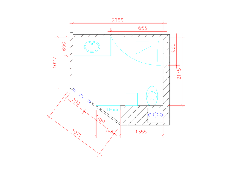 7. Большой совмещенный санузел 10,4м2. Асимметричная форма придает изюминку.