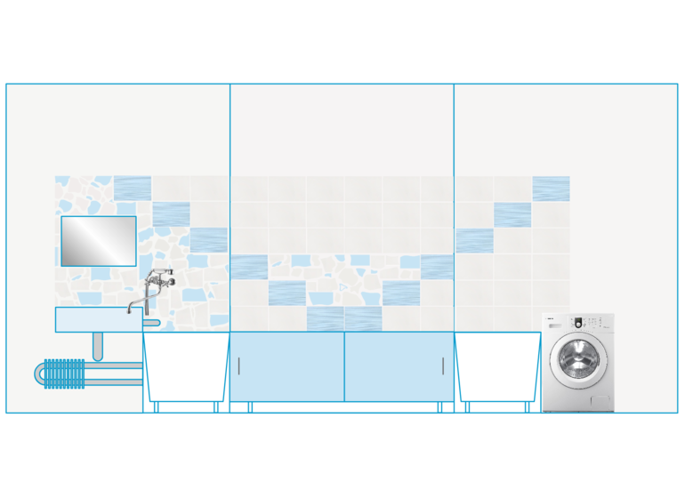 нет спец инструмента для обрезки плитки вокруг труб, и вот пришла такая идея, выложить из битой плитки стенку.