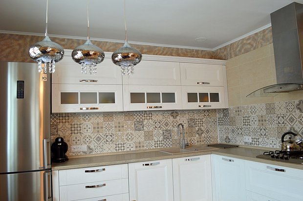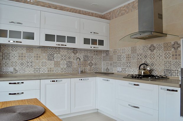 Как я вам и написала, мне такой вариант тоже видится на вашей кухне больше всех. Будет эффектно. С пэчворком все равно отсыл в бежевую гамму.