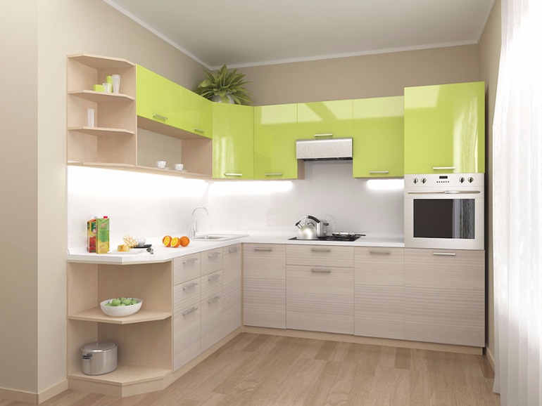 Пожелания: хочется светлую кухню с акцентами. Практичную, натирать лишний раз нет времени (поэтому наверно глянец или металлик светлый?)