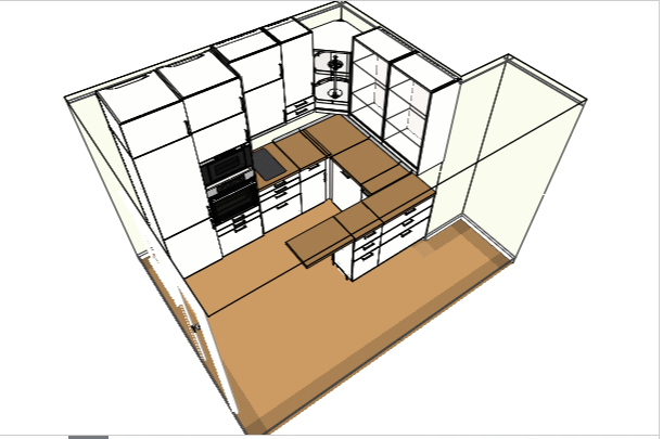 Вариант хорош, но пришлось отказаться от идеи поставить колону с духовым шкафом. Это одна из моих еще не реализованных мечт. Зато муж уже представлял как он будет закупать продукты впрок и заставлять их в колоне (бугага)