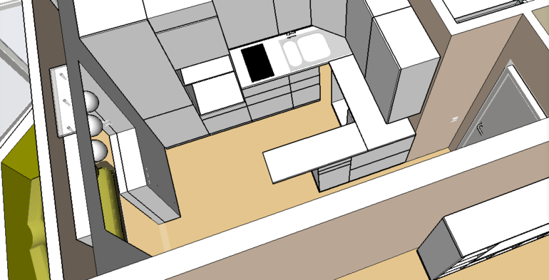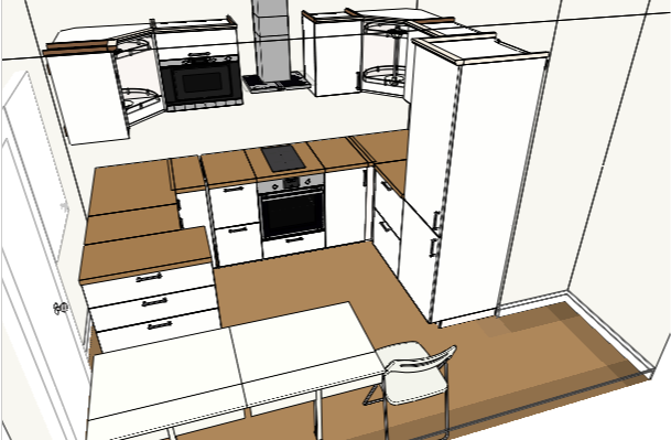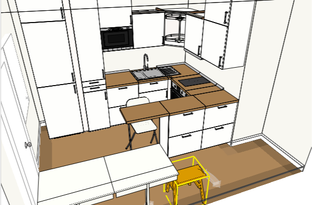 По поводу барной стойки, возможны отклонения от сценария. Все они касаются итоговой длины. На эскизе отображен самый длинный исход - стойка заканчивается у варочной поверхности.