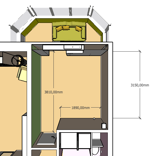 При этом стоит учесть, что у одной из стен остается очень мало места - всего 38 см в глубину.