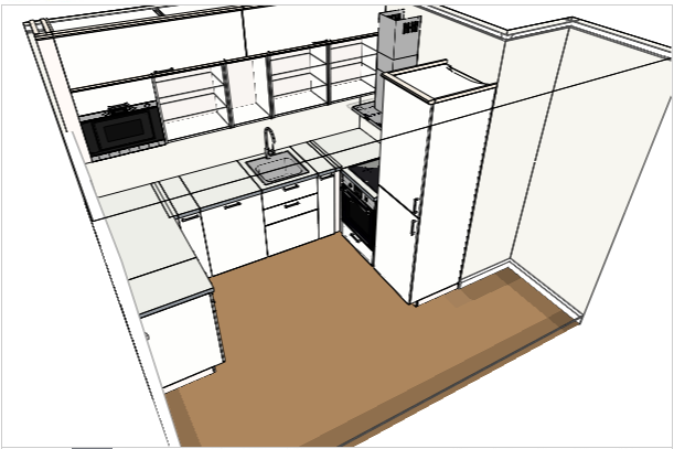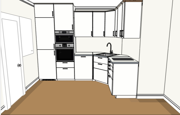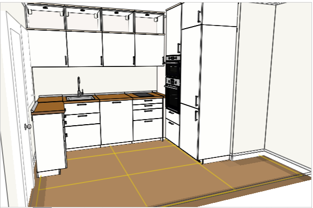 Низ: холодильник 60. шкаф 60, посудомойка 60, угол, плита 60