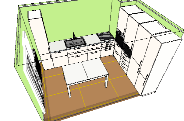 Ну и стол в середине кухни. Муж хочет поставить стол прям в середине кухни. Говорит: Ну и что что обходить? Вот примерно так: