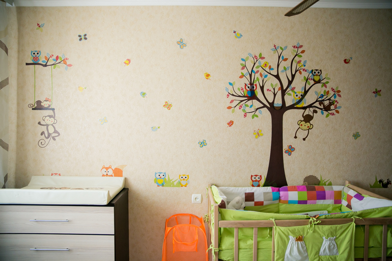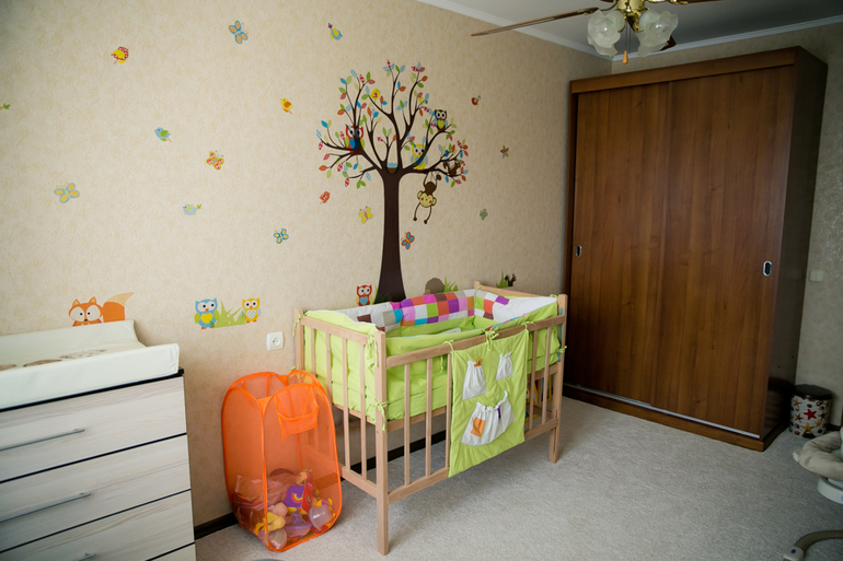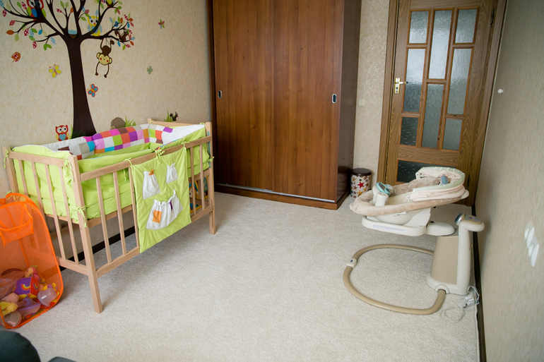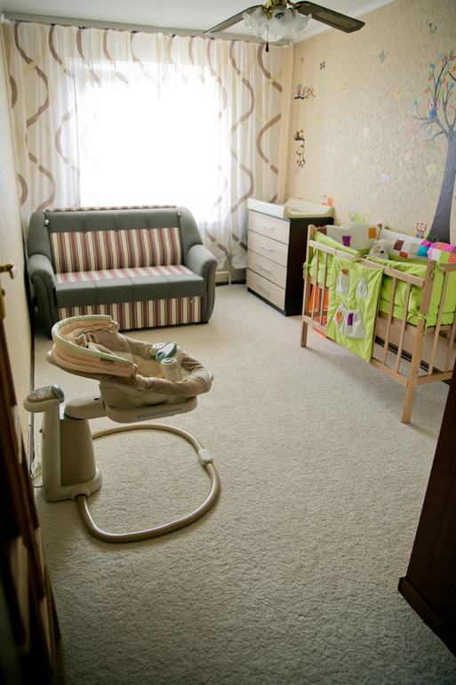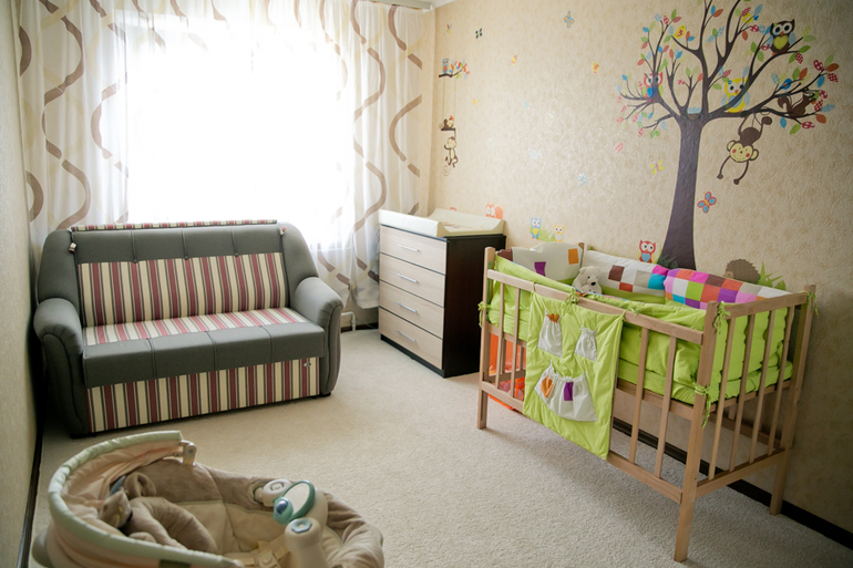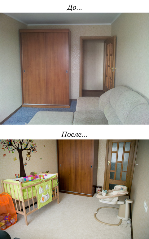 Квартиру мы приобрели год назад в неплохом жилом состоянии (и частично с мебелью) с перспективой постепенного капитального ремонта в последующие годы. Сразу сделали 2 комнаты, нынешнюю детскую по финансовым соображениям отложили на этот год, а спустя пару недель узнали о пополнении, и только на 7 месяце решили ее обновить. Приобрели комод для малышковых вещичек, детскую кроватку. Подумали и про спальное место (диван) для ребенка "на вырост", но в то же время гостевое на первое время (для тех же свекров, приезжающих из другого города), да и мне с ребятенком будет удобно там прилечь, не тревожа отдыхающего мужа.