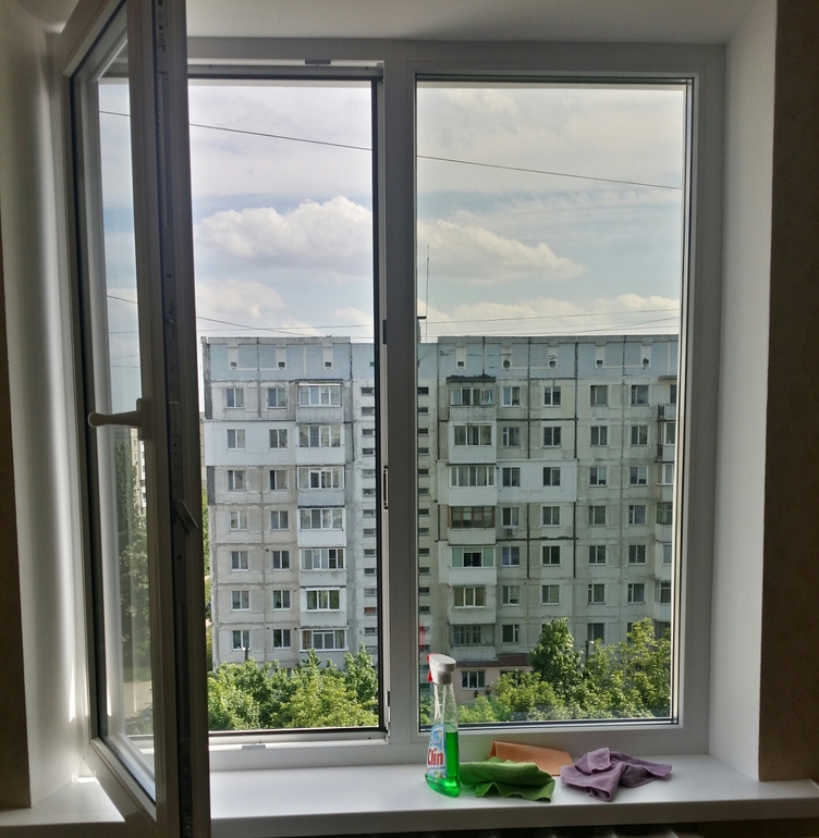 Старое деревянное окно в комнате дуло и текло, первым делом заменили его на качественный энергосберегающий стеклопакет Low-E. Не пропускает жару летом + удерживает тепло зимой.