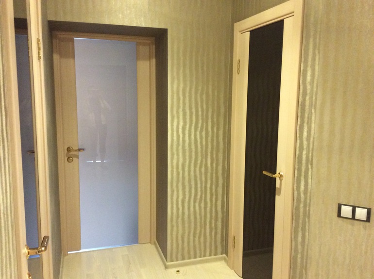 Оля, они все с черным стеклом, но днем , когда двери закрытые, чёрное стекло превращается в светлое, от солнечного света в комнате, вообщем не айс :) очень жалею, что мужа не послушала, тот просил двери венге с белым матовым стеклом, да и в уборке они, я думаю , были бы проще