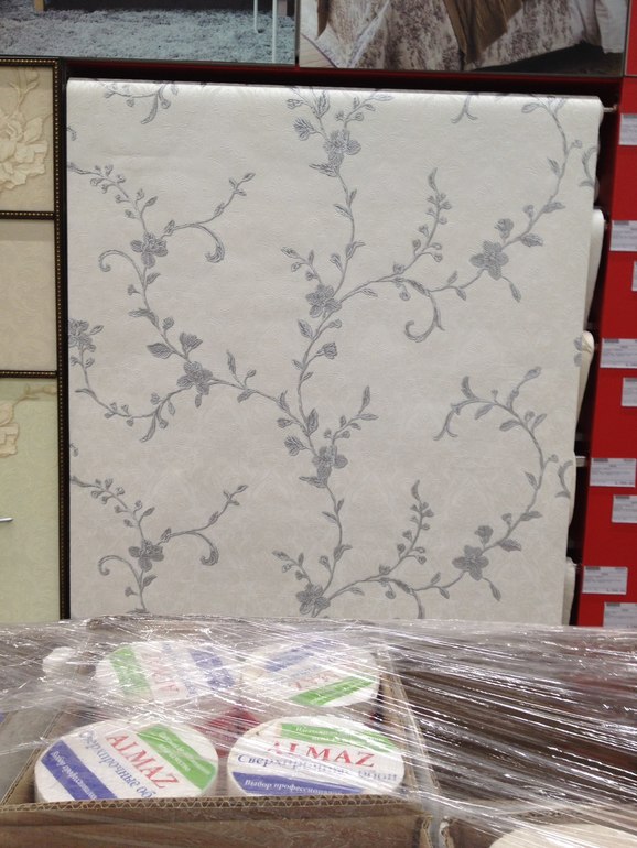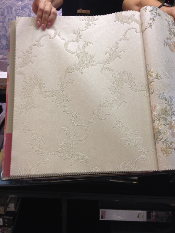 вот такие обои. Молдинг будет только под потолком. Комната большая, смотрится пустовато без цветочков, мне так кажется. Вот бумаю шторами разбавить, как финансы позволят