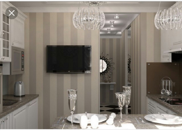 если такая маленькая комната и невысокие потолки, тогда может в классическую полосочку и зеркала где-то уместны будут