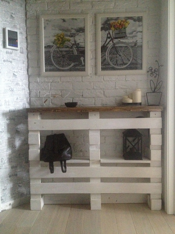 Фонарь еще не повесели. Вот он, внутри консоли стоит. Будет висеть над картинами сверху. А там, где торчат провода, будет розетка для зарядки телефона и выключатель для бра.
