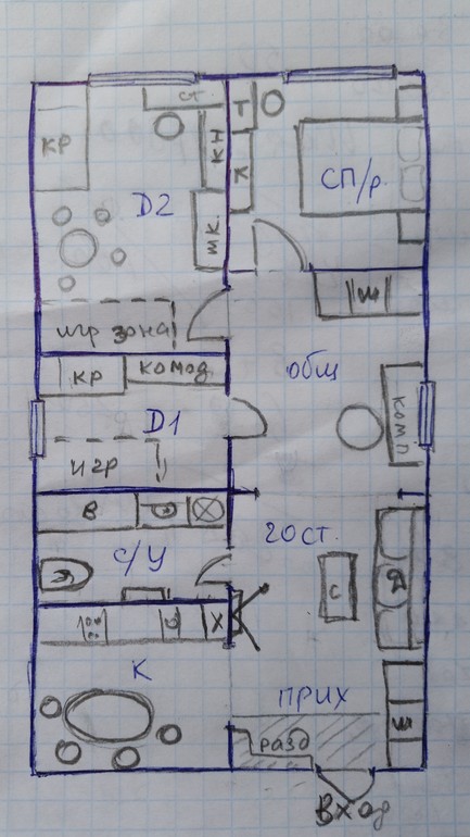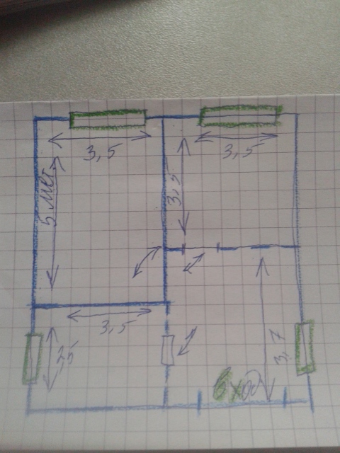 ВОТ ЧТО имеем(простите за эскиз) между кухней и нашей комнатой широкая дверь 1.5 м
