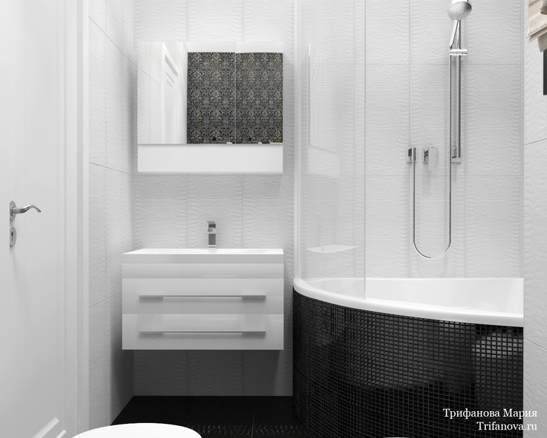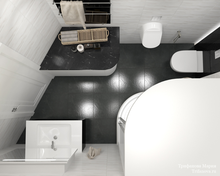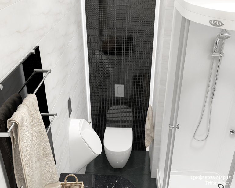 Второй санузел неправильной формы из-за перепланировки квартиры. Увеличивали его площадь за счет коридора.