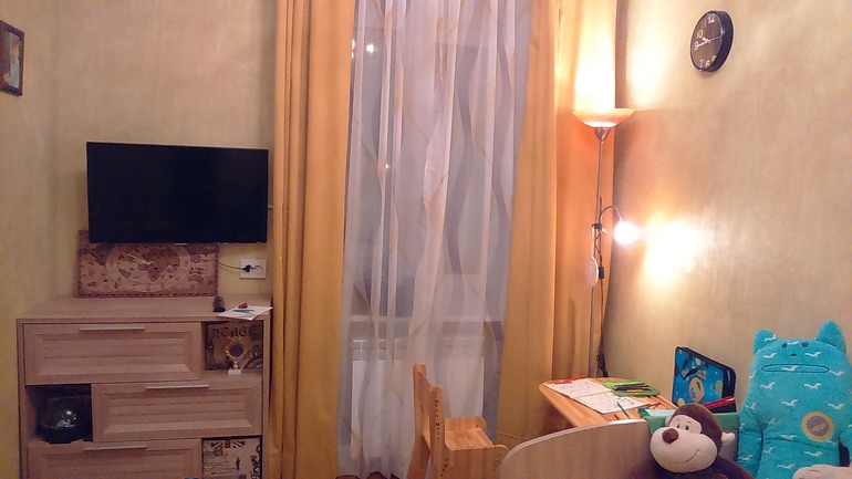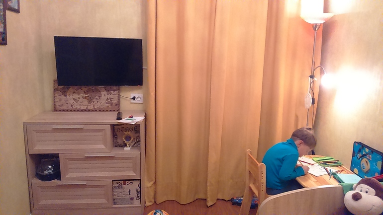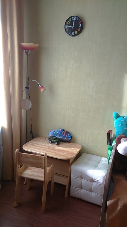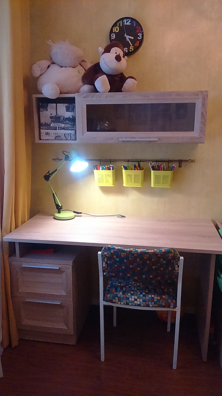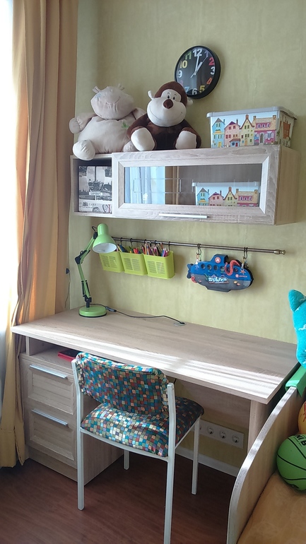 Стол и стульчик пока тоже старые, в скором времени заменим, над столом хочется каких-то полочек повесить:
