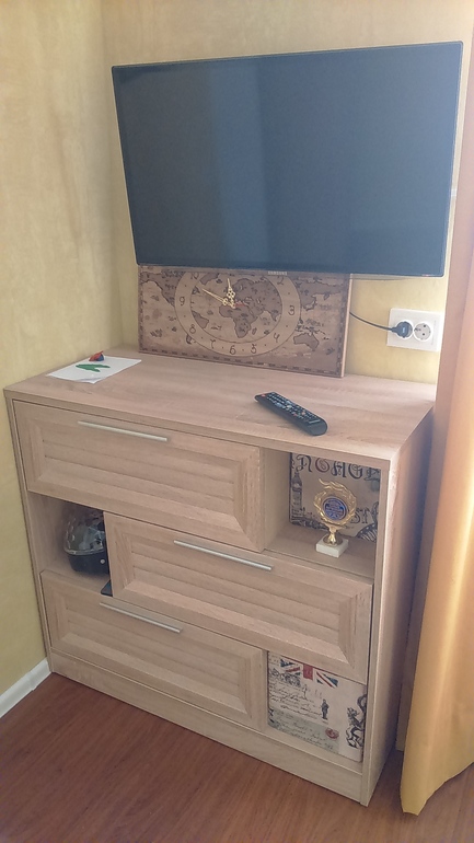 Часы на комоде достались в подарок при покупке мебели, но они мне не очень нравятся, поэтому пока стоят просто так: