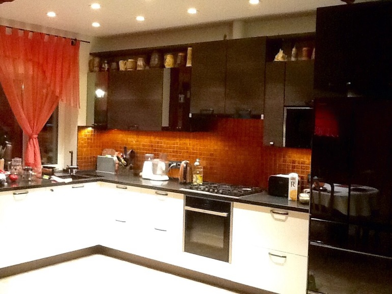 Очень у вас красиво, не загромождайте фартук. А что за фирма у вас кухни, не подскажете?