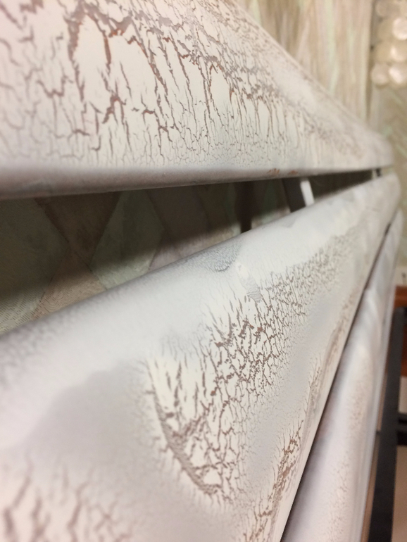 Посоветовали нам ее закракелюрить. ВОт что из этого получилось. Сутки трудов и вуаля! Получили дизайнерскую кровать. Я думала, что рыжина не закрасится. Но вполне.