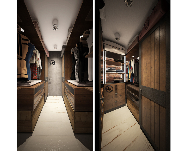 Чтобы не перегружать интерьер разного рода шкафами, мы решили в спальне выделить небольшой уголок под гардеробную, в которой бы и хранились все вещи.