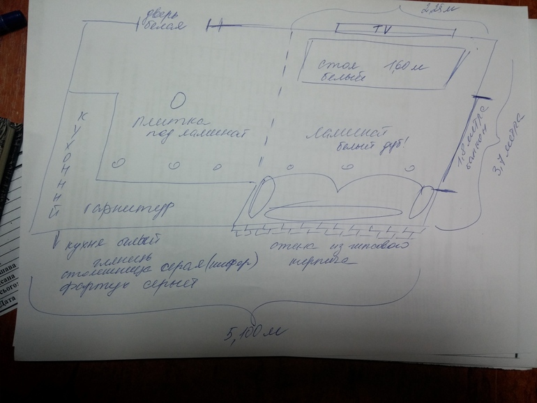 Интерьерное решение кухниОчень нуждаюсь в ваших идеях (своих нет вообще) Реально я на гране срыва,не могу подобрать обои в кухню-гостинную.мало того что я изначально всю мебель расположила не правильно,так теперь боюсь еще и сены испортить. .Помогите подобрать и правильно разместить на стенах обои.Как смогла ниросовала кухню-гостинную .Нужны идеи или лучше ваши фото с кухней - гостиной , где одна стена темно-серая или графит . Не складывается все в один пазл в голове и ни как не могу выбрать обои. И так кухонный гарнитур белый глянец со столешницей цвета темный шифер! Рабочая стена будет тоже темно-серой. Рядом белая кирпичная стена с желтым диваном., а на против хочу темную стену, под которой будет стоять белый глянцевый стол и стулья цвета беж.Пол белый Дуб Таркетт. Вот мне очень нравится эта графитовая стена. Где бы такие обои найти?