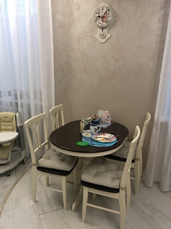 стулья - реставрация старых - покраска под старину плюс алькантара (по виду как замша, покупали там, где покупают ткань для машин)