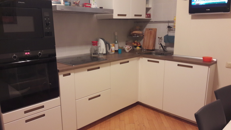 Ого,у вас сколько уместилось.У нас такая же кухня и посудомойку на 60 никак не можем спланировать,только на 45 встает.А можете и мне в личку Вашу кухню показать?