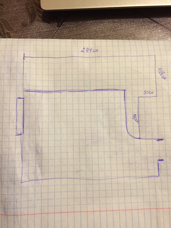 Интерьерное решение кухниподскажите пожалуйста проект кухни(( а ещё лучше если отправите в личку вашу кухню.. У нас выступ(( и он очень мешает сделать кухню как мне надо) может у вас такая же планировка кухни). Я нарисовала на бумаге сама размеры)) а на втором фото показала какую кухню хочу( угловую) где выступ шкафчики будут только внизу ( наверху не получается)