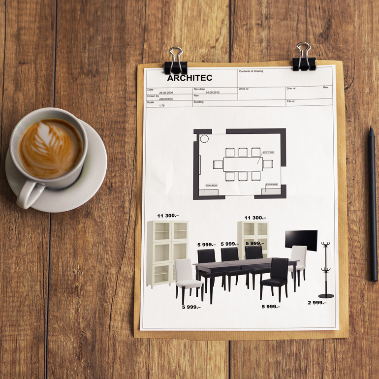 подготовим коллажи с подбором декора и мебели (если нужно) и составим таблицы со стоимостью закупок(ориентируемся на ваши пожелания).