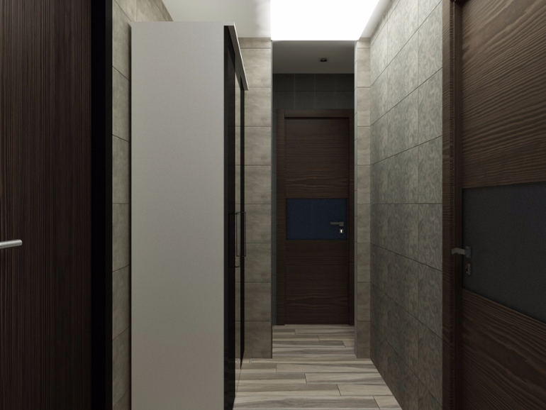 Мною были предложены несколько вариантов расстановки. Этот вариант захотел сам заказчик) Коридор не будет настолько темным как на визуализации.