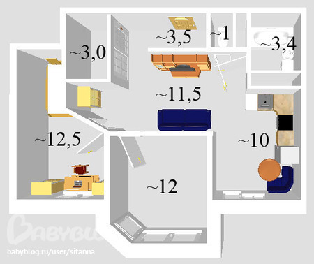 Р.С. Я бы для себя тоже не стала бы кухню переносить, склоняюсь больше к решениям, которые предлагает Таисия, и еще с вариантом спальной-гостиной-кухней в одном пространстве с зонированием, если не хватает одного окна.