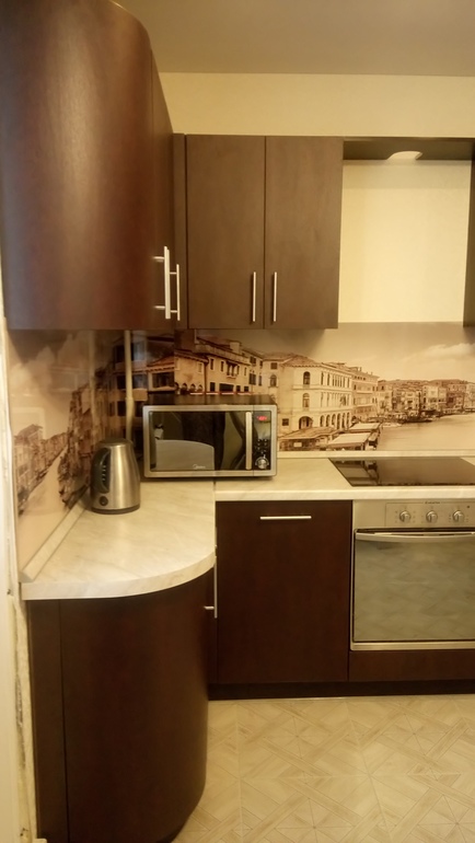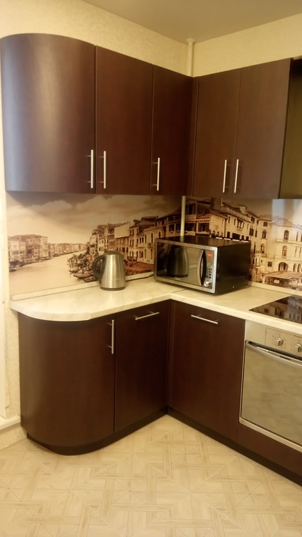 Красивая кухня!!! Микроволновку перестаньте на место чайника, ближе к краю, в углу она как-то инородное смотрится