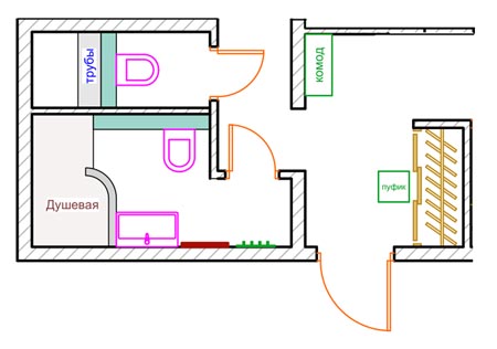 Выслушав все пожелания по наполнению ванной комнаты, а так же возможность объединения с туалетом (как вариант), но не обязательно, я приступил к работе.