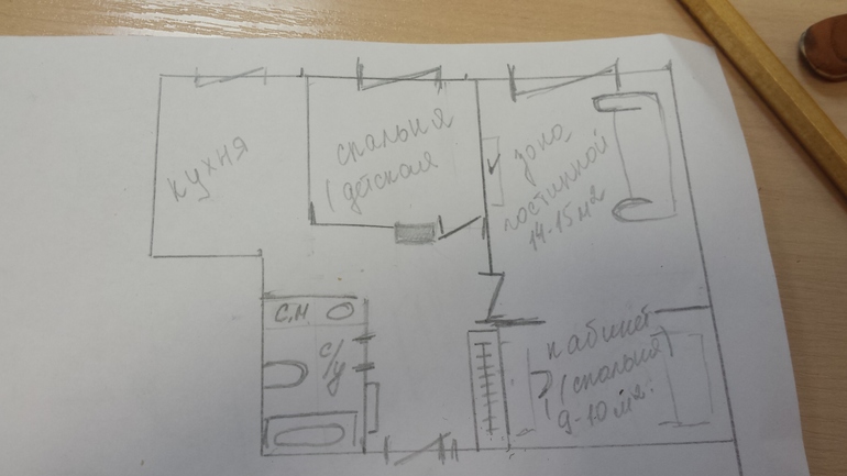 Подкупило то что площадь большая и если постараться можно организовать пространство по другому. 1. По замерам стен фото прикреплю дома с кадастрового паспорта, сейчас нет фото.. 2. Состав семьи муж и жена, молодые, надеемся в ближайшее время появится ребенок. 3. По функционалу... Хочется организовать пространство так чтоб у родителей была спальня, была детская. И как-то переделать коридор, потому как сейчас он практически не функционален.