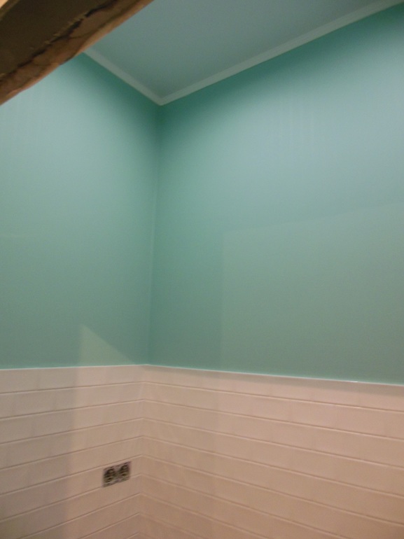Размеры 1м*на1,9м. Обои под покраску (остались с комнат, не хотела больше тратиться))) + краска Тиккурила моющаяся. на счет бордюра, купила, типа карандаш, потом передумала купила молдинг, а теперь сокрушаюсь, что не сделала просто как есть, сверху закругленный кантик, который под плитку заводится...